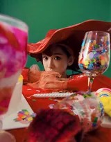 写真中,李沐宸身着的红色服饰剪裁精致,带有浓郁的复古格调。或是收腰长裙衬托出优雅身线,或是俏皮短款搭配诠释少女的活泼。最具标志性的莫过于那顶红色贝雷帽,它不仅是一件配饰,更是整体风格的点睛之笔。呢绒材质赋予了温暖柔软的触感联想,斜戴的戴法则打破了整体的对称与规整,瞬间注入了法国式的浪漫与不羁,让英伦风格在严谨中透出灵动的呼吸感。