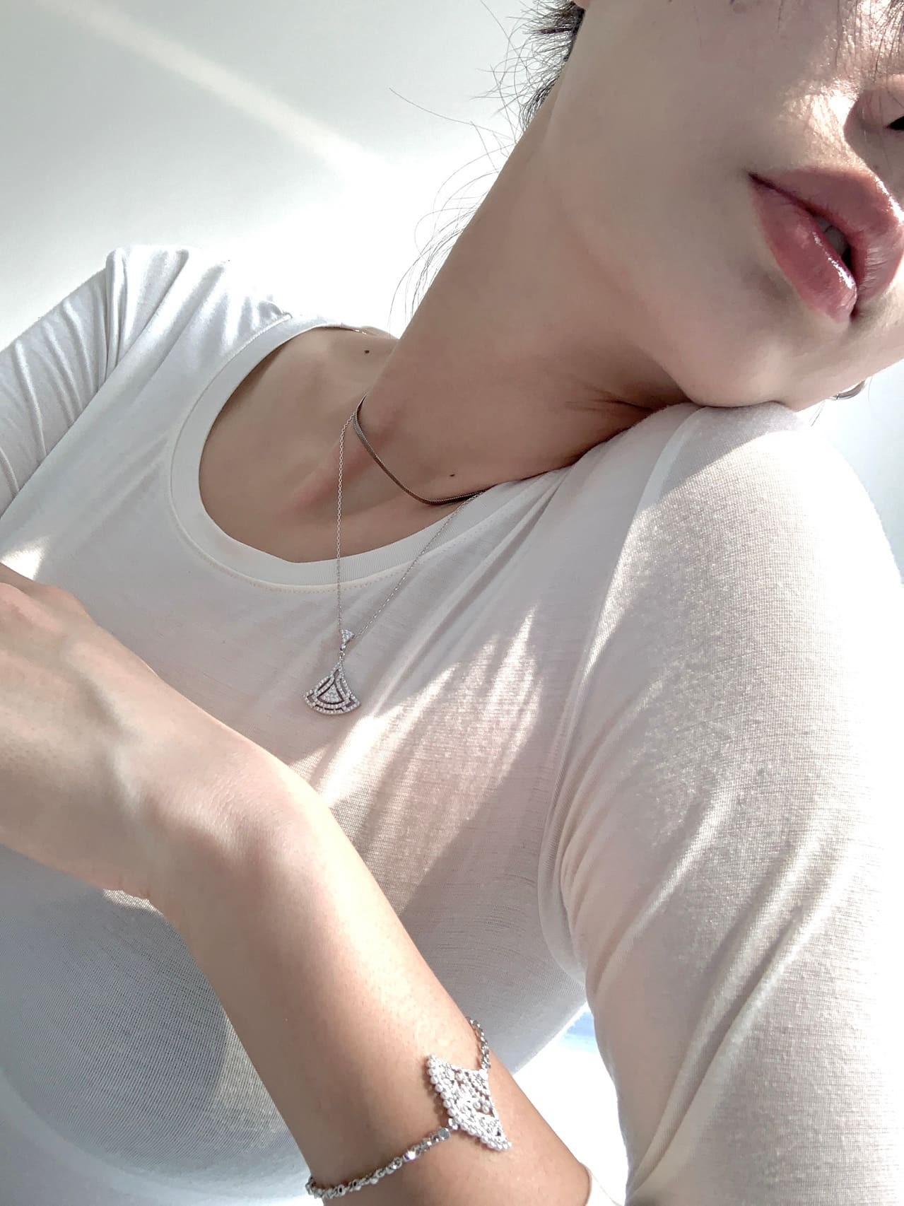 霍思燕一袭白裙,宛如白雪公主降临人间,却带有一丝现代叛逆气息